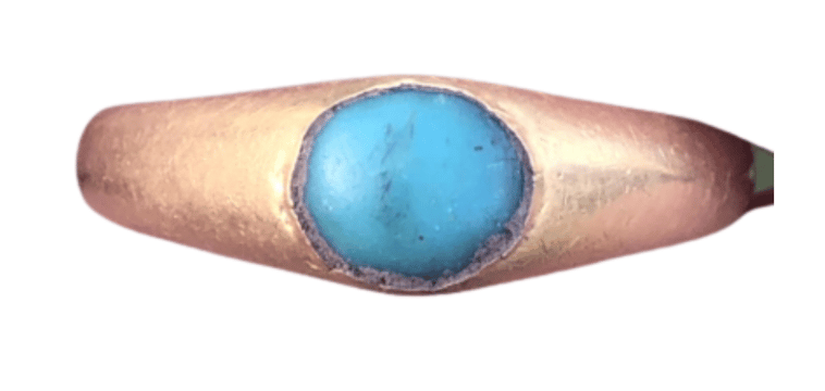 The object has since been formally identified as a complete medieval gold ‘stirrup’ ring set with a cabochon turquoise. The official treasure report describes it as a substantial example of its type.